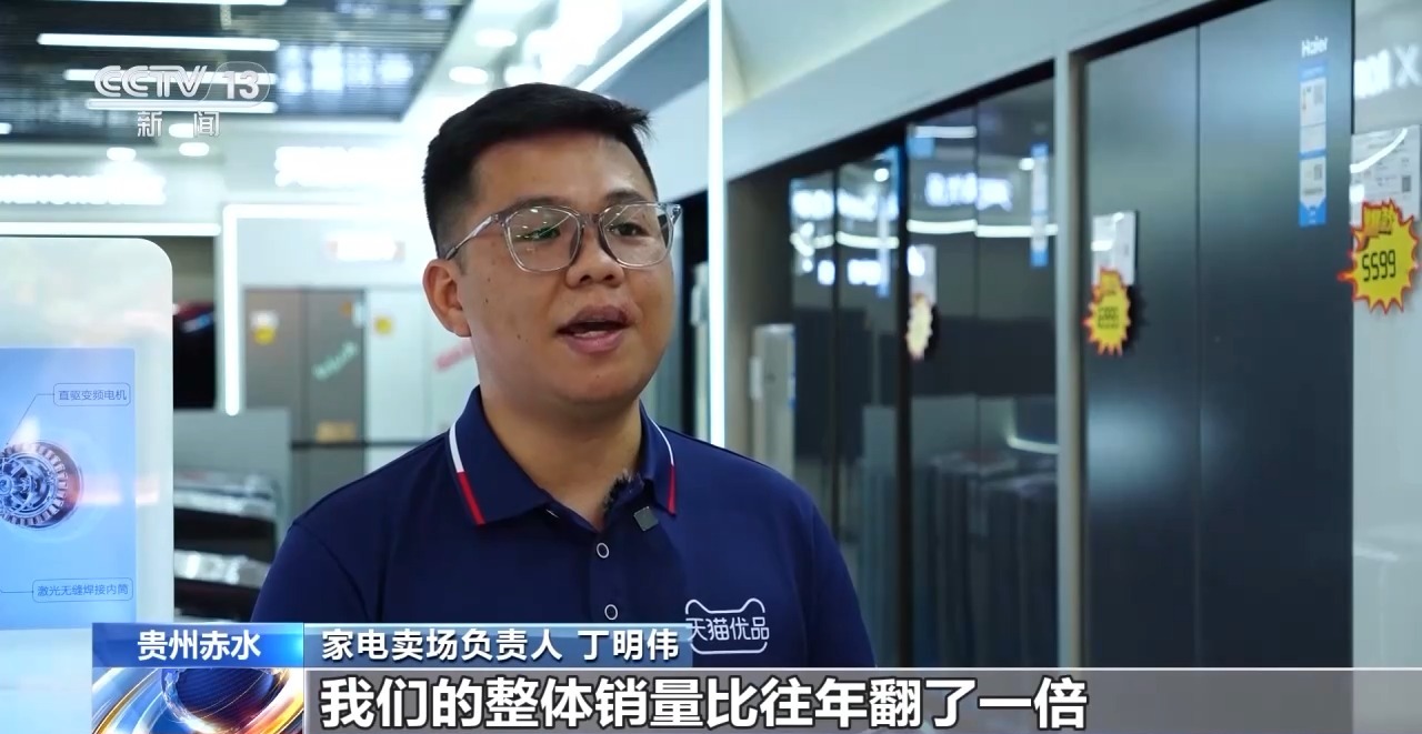 家电卖场担任人 丁明伟:有了“国补”政策之后,我们的全体销量比往年翻了一倍。大尺寸的电视、大尺寸的嵌入式冰箱,以及洗烘套拆、全屋清水这一类可以或许提拔糊口质量的家电,全体的销量初步统计提拔了20%摆布。