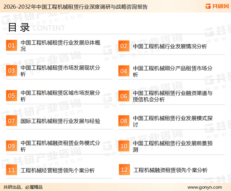 共研财产研究院通过对息阐发、业内资深人士和相关企业高管的深度,以及阐发师专业性判断和评价撰写了《2026-2032年中国工程机械租赁行业深度调研取计谋征询演讲》。
