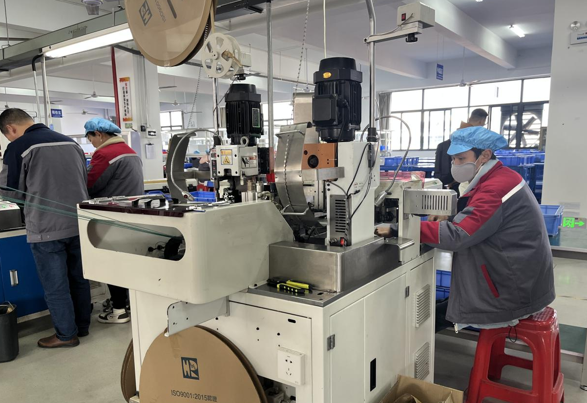 据领会,由展旺细密制制无限公司投资扶植的展旺财产园一期项目于2024年元月开园,项目总投资10亿元,达产后,构成年产8000万套毗连线吨导电浆料的出产能力。记者走进该公司铆压出产车间,新引进的全从动端子出产线上,线材如飞针走线般高速运转,正在机械内部从动完成铆压工序,变成打好端子的成品线,机械手将产物转移到放置区,工人再进行最初的查验,整个出产过程有条有理。